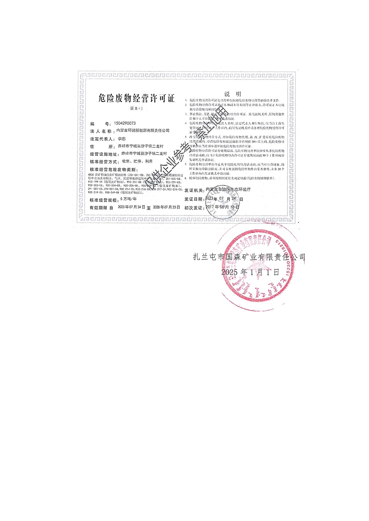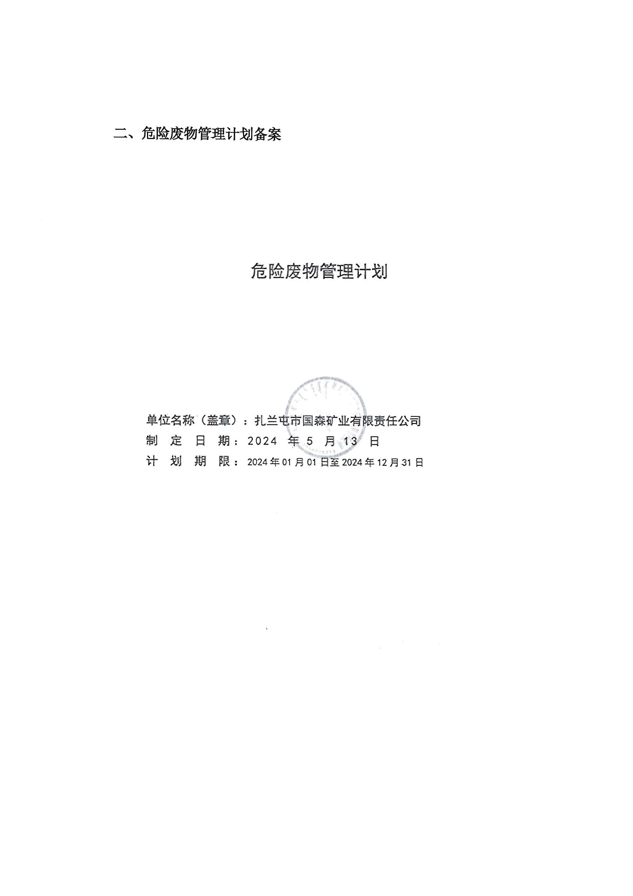 扎蘭屯市國森礦業(yè)有限責(zé)任公司危險廢物管理信息公開